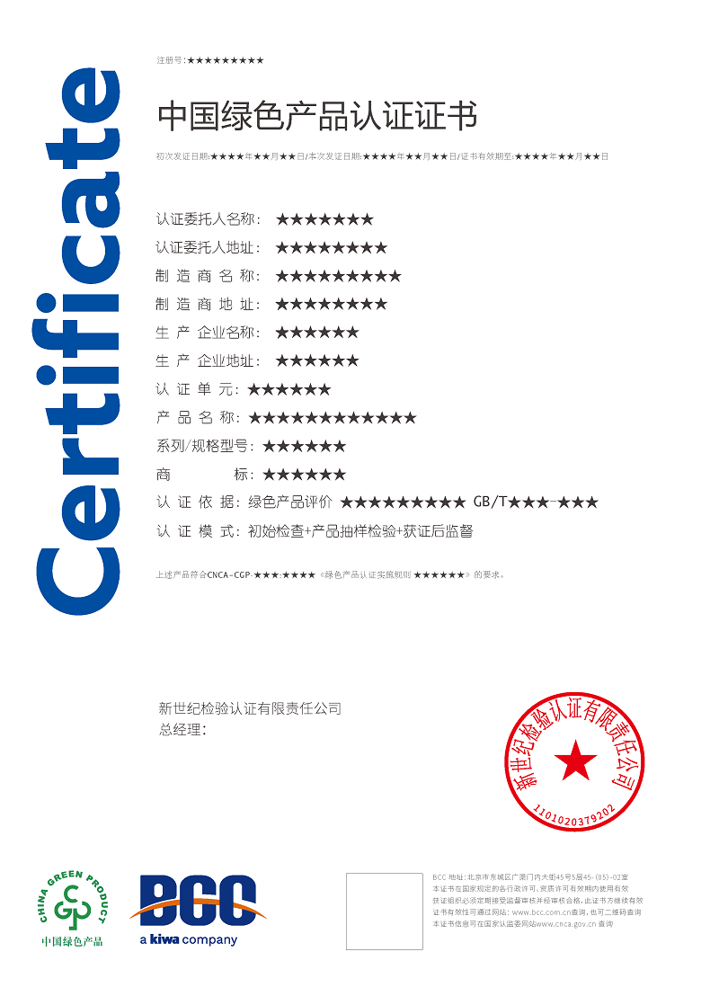 目前,BCC已順利通過國家認證認可監(jiān)督管理委員會(CNCA)審批,獲得了多項綠色產(chǎn)品認證資質,包括: