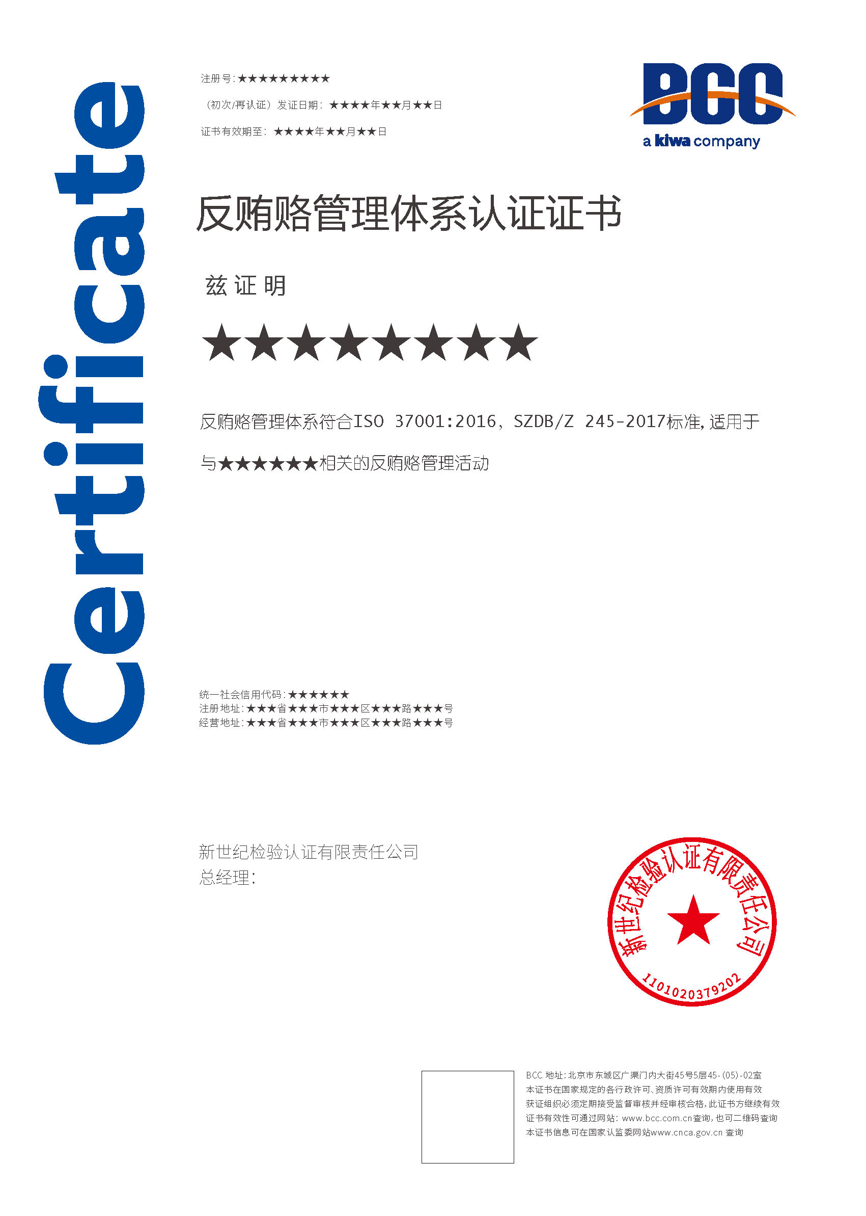 本頁涉及的認(rèn)證服務(wù)中均有對(duì)應(yīng)的《認(rèn)證實(shí)施規(guī)則》,BCC擁有其最終解釋權(quán)。任何組織及個(gè)人未經(jīng)BCC許可,不得以任何形式全部或部分使用(法律要求除外)認(rèn)證相關(guān)信息。如需獲取相關(guān)實(shí)施規(guī)則請(qǐng)用以下方式聯(lián)系獲?。弘娫挘?10-58579316 郵箱:fwjs@kiwa.cn
