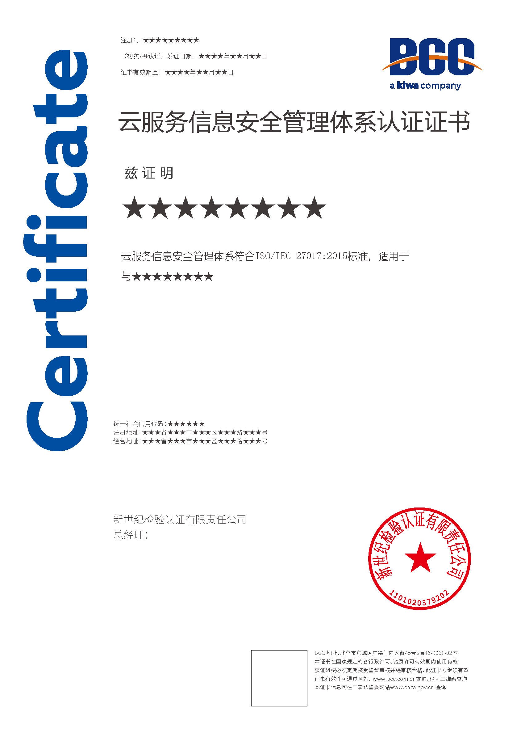 本頁涉及的認證服務(wù)中均有對應(yīng)的《認證實施規(guī)則》,BCC擁有其最終解釋權(quán)。任何組織及個人未經(jīng)BCC許可,不得以任何形式全部或部分使用(法律要求除外)認證相關(guān)信息。如需獲取相關(guān)實施規(guī)則請用以下方式聯(lián)系獲?。弘娫挘?10-58579316 郵箱:fwjs@kiwa.cn