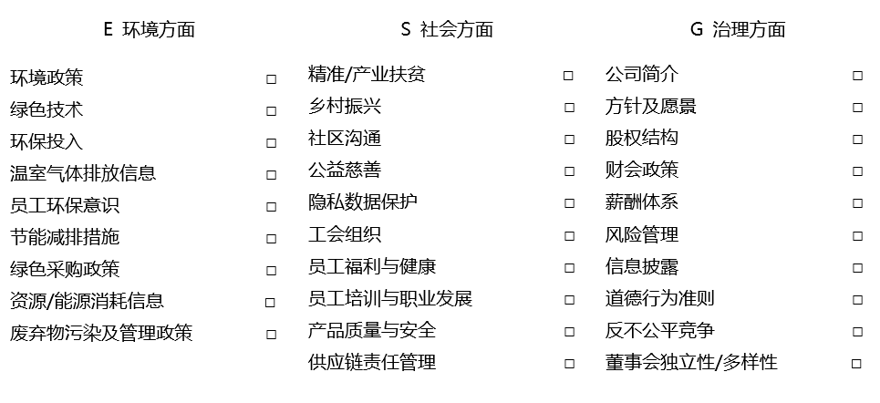 ESG報告包括的內容: