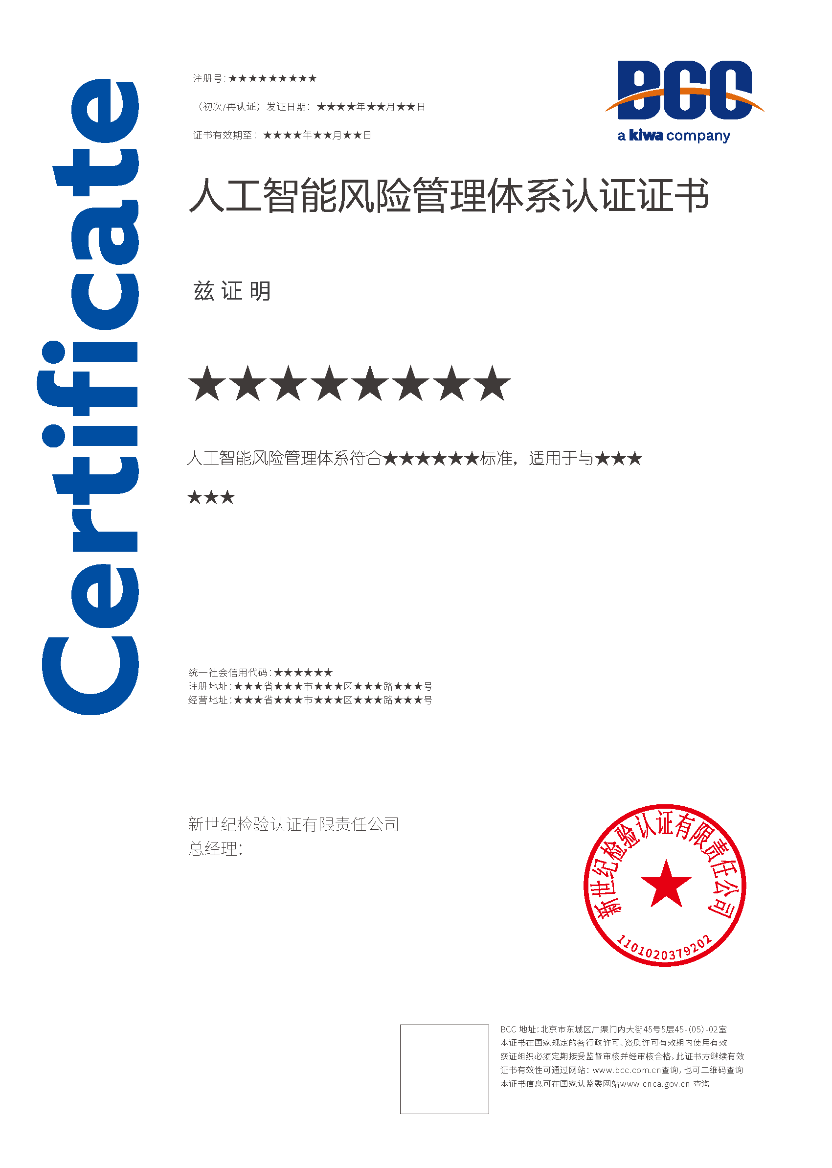 本頁涉及的認證服務(wù)中均有對應(yīng)的《認證實施規(guī)則》,BCC擁有其最終解釋權(quán)。任何組織及個人未經(jīng)BCC許可,不得以任何形式全部或部分使用(法律要求除外)認證相關(guān)信息。如需獲取相關(guān)實施規(guī)則請用以下方式聯(lián)系獲取:電話:010-58579316 郵箱:fwjs@kiwa.cn