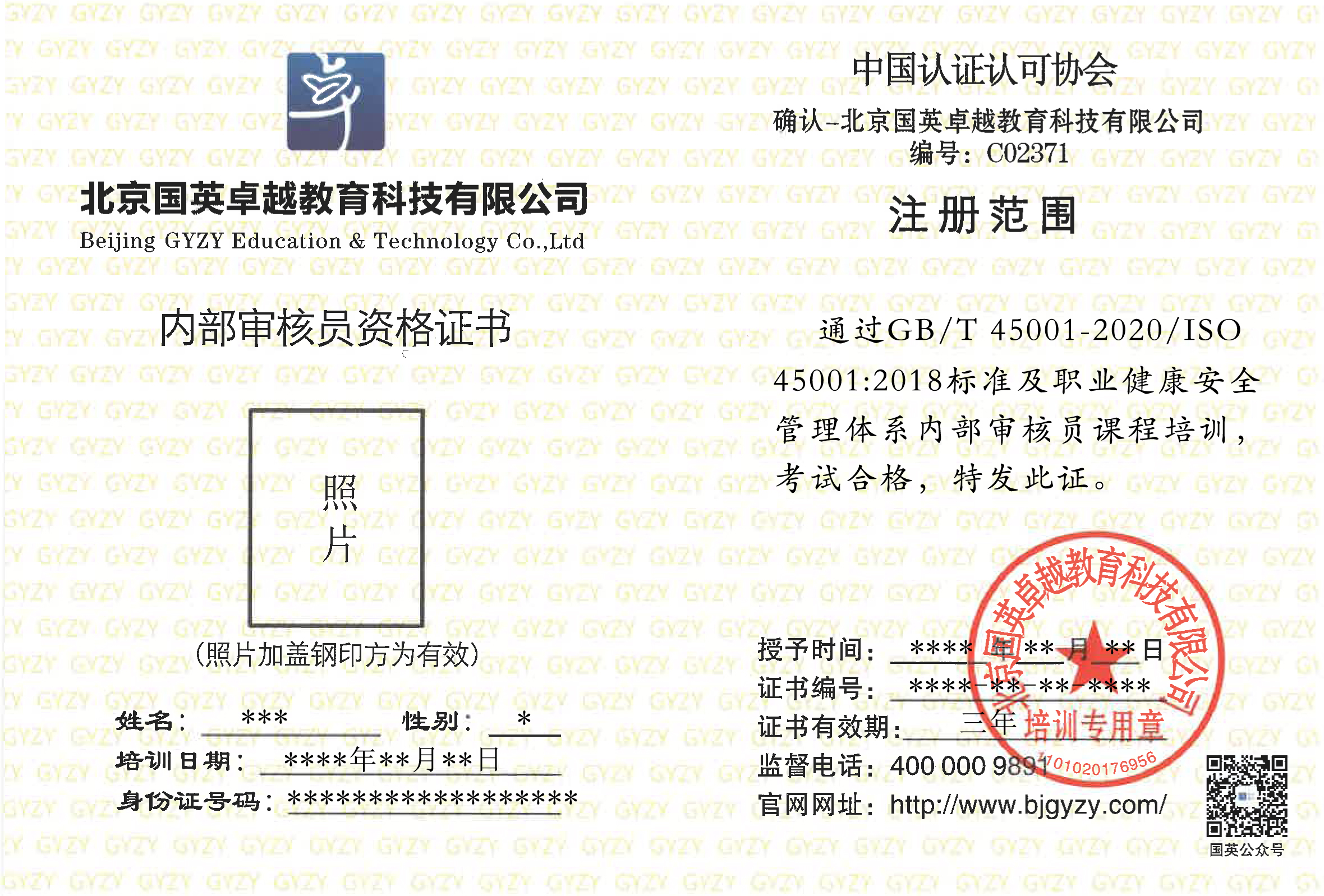 認(rèn)證依據(jù):GB/T 45001-2020 idt ISO 45001:2018,它與質(zhì)量、環(huán)境管理體系并稱為三體系。