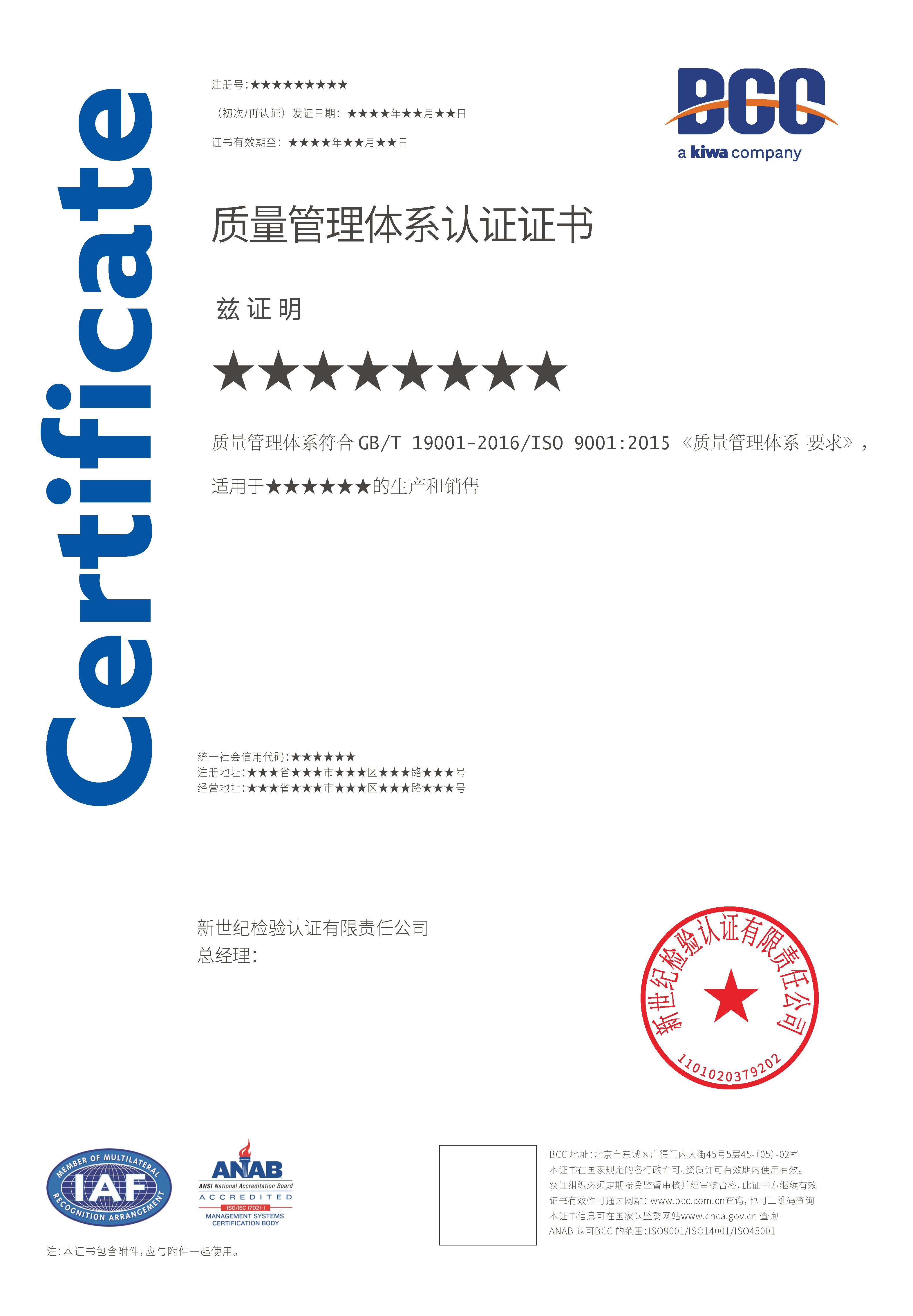 本頁涉及的認(rèn)證服務(wù)中均有對應(yīng)的《認(rèn)證實(shí)施規(guī)則》,BCC擁有其最終解釋權(quán)。任何組織及個人未經(jīng)BCC許可,不得以任何形式全部或部分使用(法律要求除外)認(rèn)證相關(guān)信息。如需獲取相關(guān)實(shí)施規(guī)則請用以下方式聯(lián)系獲取:電話:010-58579316 郵箱:fwjs@kiwa.cn