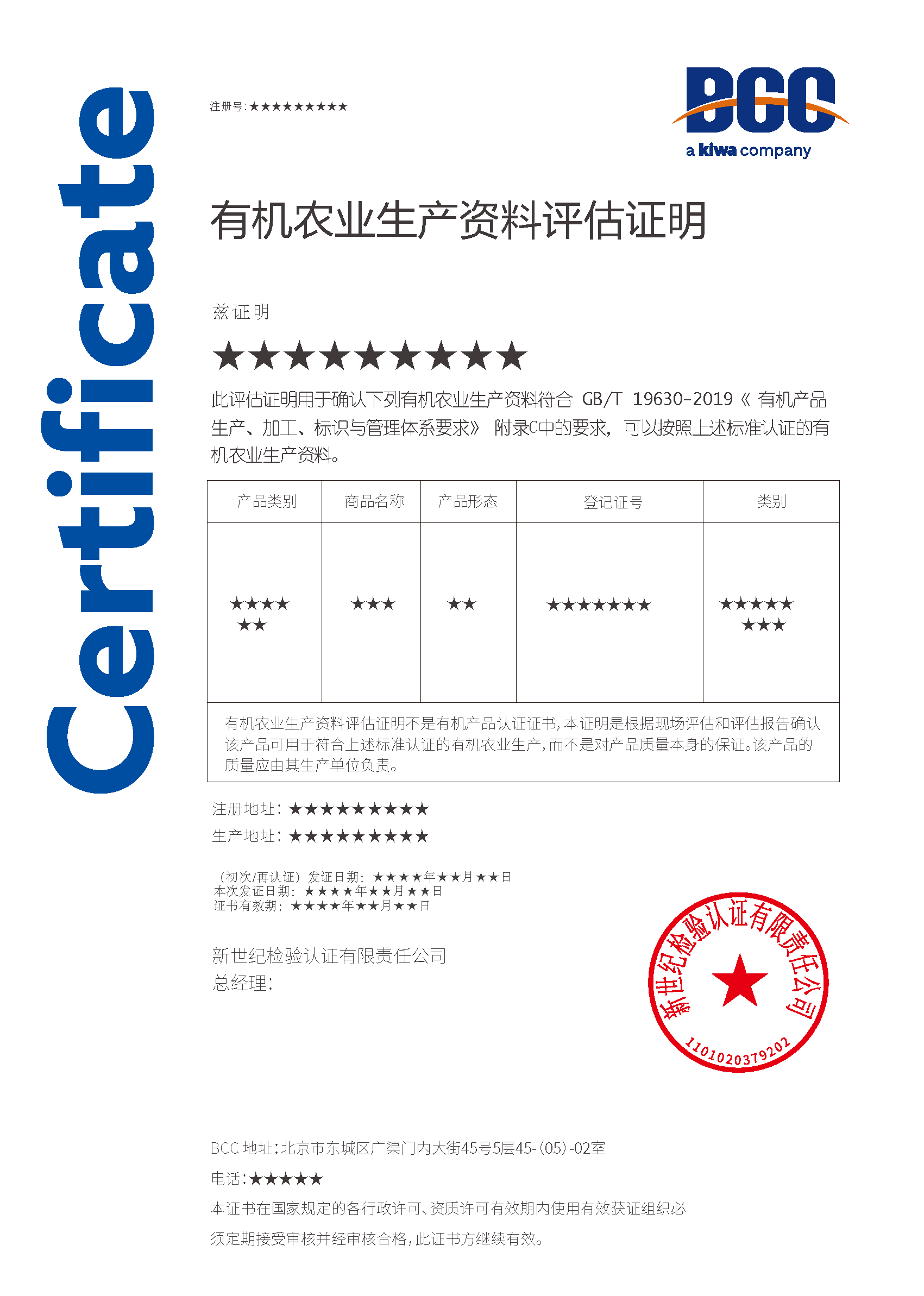 5、認(rèn)證委托人及其相關(guān)方一年內(nèi)未因除上述所列情形之外其它情形被認(rèn)證機(jī)構(gòu)撤銷有機(jī)產(chǎn)品認(rèn)證證書。