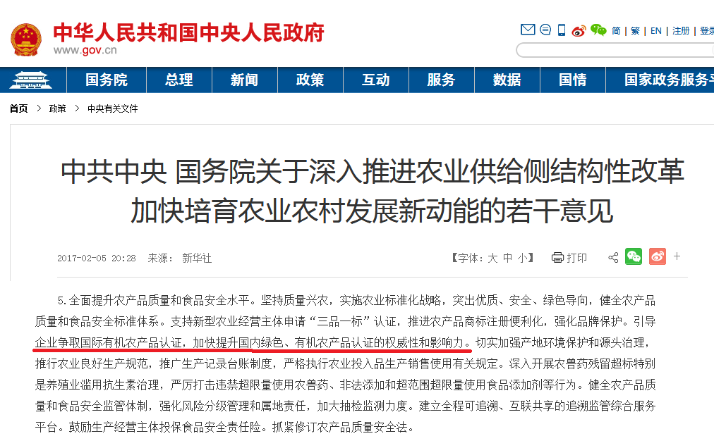意見指出,“引導(dǎo)企業(yè)爭(zhēng)取國(guó)際有機(jī)農(nóng)產(chǎn)品認(rèn)證,加快提升國(guó)內(nèi)綠色、有機(jī)農(nóng)產(chǎn)品認(rèn)證的權(quán)威性和影響力。”