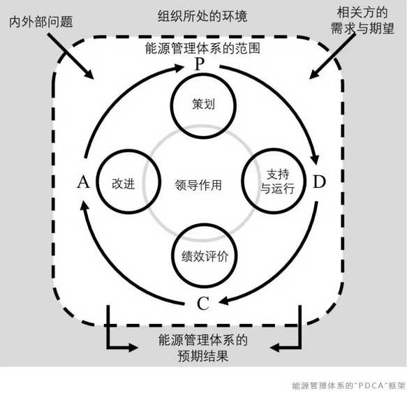 ISO 50001提供了一個方法框架,用于開發(fā)有效的能源管理系統(tǒng),與其他ISO管理體系標(biāo)準(zhǔn)一樣,能源管理體系遵循“計(jì)劃-執(zhí)行-檢查-行動”(PDCA)流程,以實(shí)現(xiàn)持續(xù)改進(jìn)。