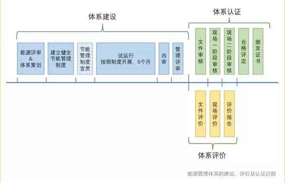 用能單位開展能源管理體系工作,通常包括:體系建設(shè)、認(rèn)證或評價、持續(xù)運(yùn)行和不斷提升的過程。