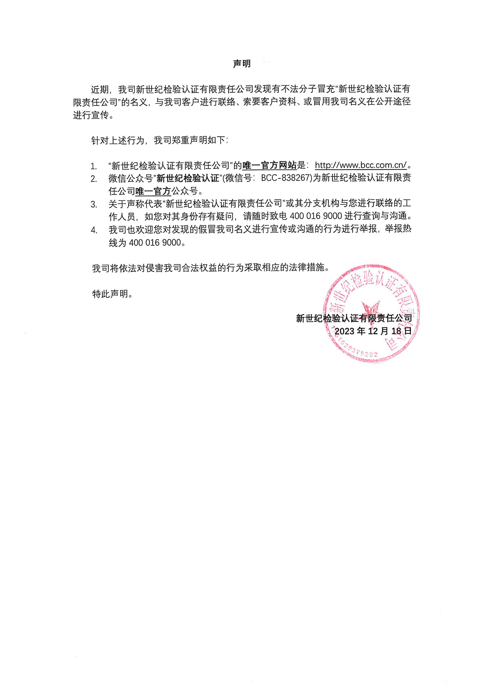 新世紀(jì)檢驗認(rèn)證有限責(zé)任公司