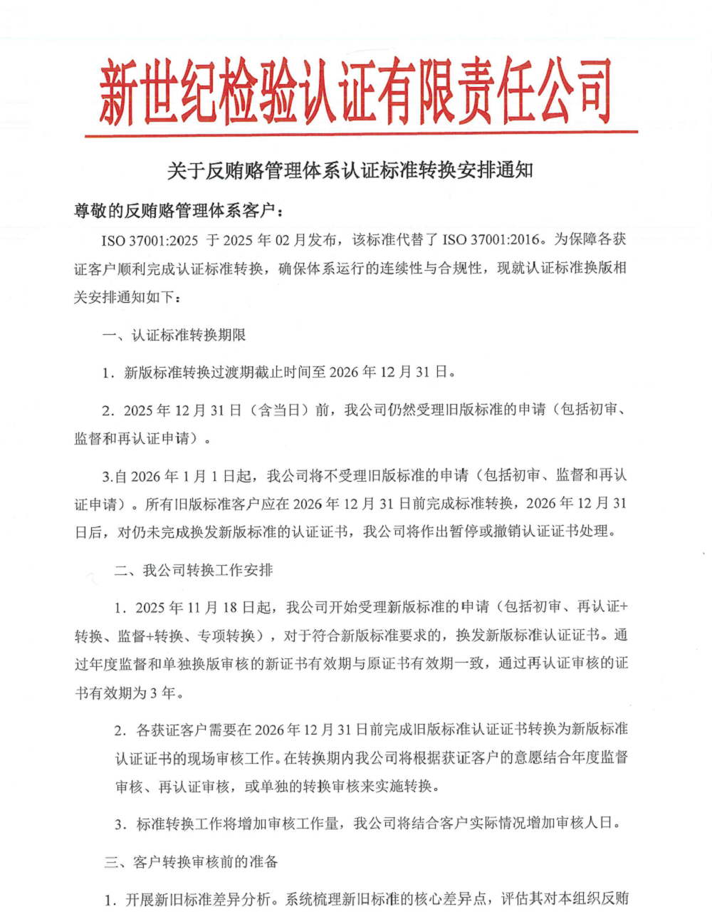 2.2025年12月31日(含當日)前,我公司仍然受理舊版標準的申請(包括初審、監(jiān)督和再認證申請)。