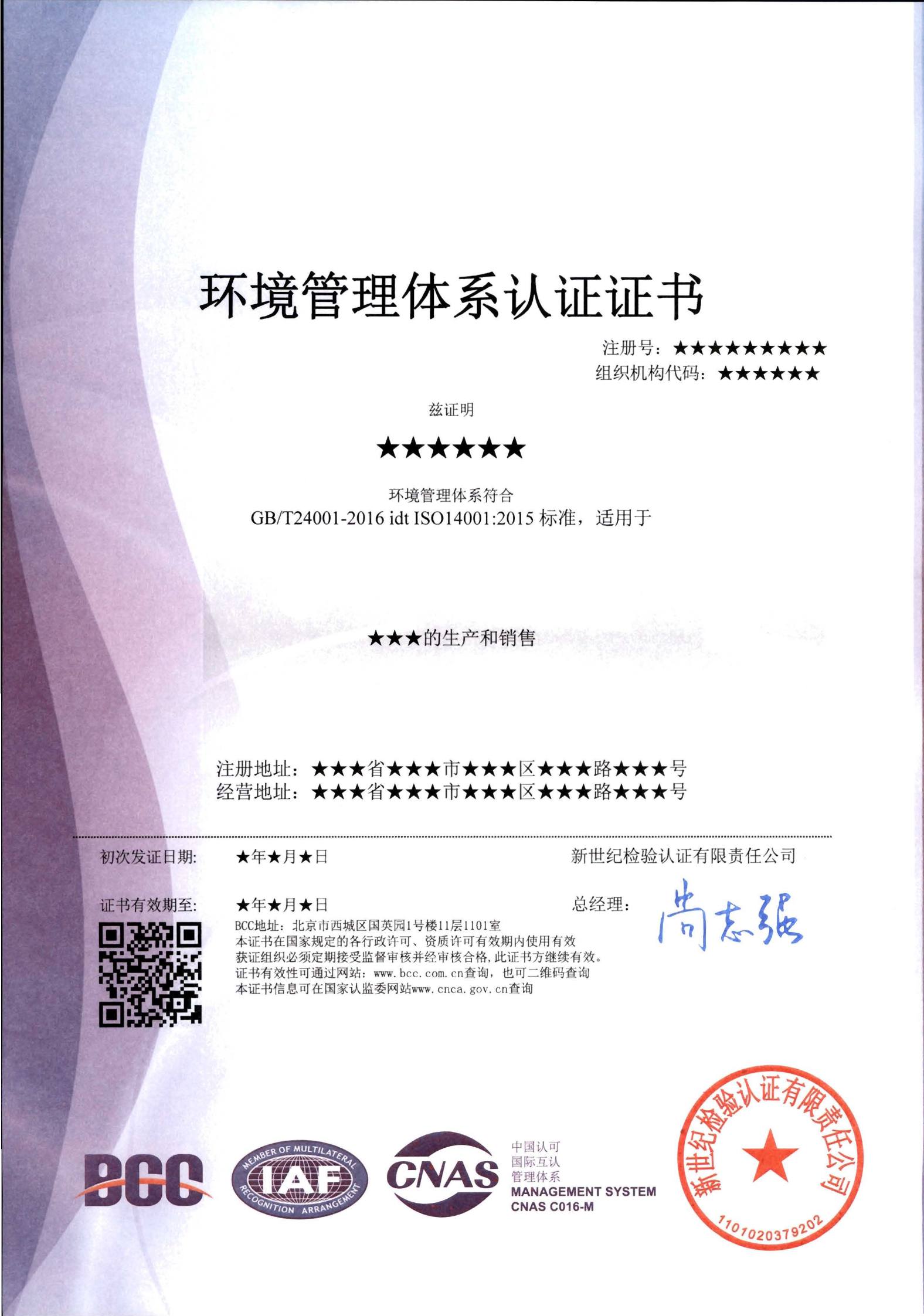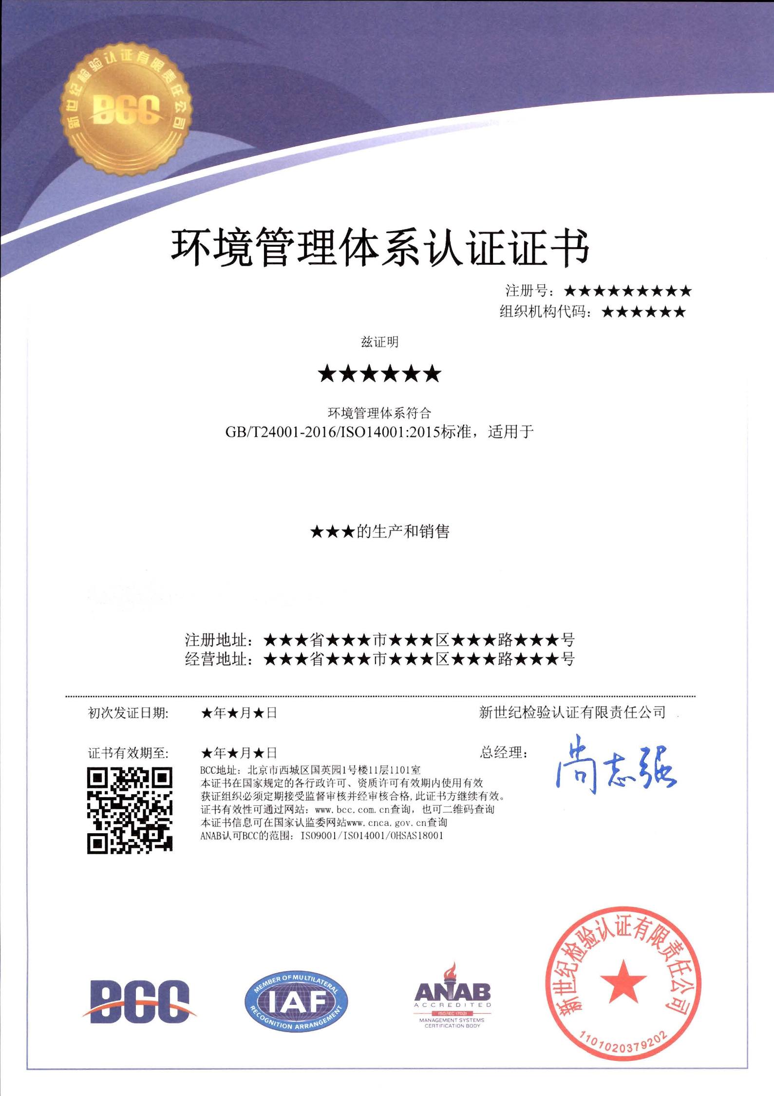 你好,環(huán)境管理體系認證書樣本每個認證機構(gòu)都是不一樣的。但是證書上一定有認證的標準、標志、產(chǎn)品范圍等信息。